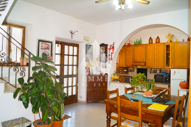 L'immobile con ingresso indipendente, si sviluppa su tre livelli: il piano terra composto da un ampio e luminoso salone, cucinotto abitabile finestrato con grazioso arco a vista e forno a legna di pregio, un servizio ed una spaziosa camera con portafinestra; al primo piano troviamo tre ampie camere da letto, di cui due matrimoniali di circa 20 e 25 mq, caratterizzate da armadi a muro, attraverso le quali si accede direttamente ai due terrazzi di proprietà, e un comodo servizio padronale finestrato, di circa 9 mq, dotato di box doccia e vasca.